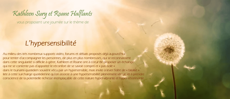 Au milieu des très nombreux supports vidéo, forums et débats proposés déjà aujourd’hui pour tenter d’accompagner les personnes, de plus en plus nombreuses, qui se reconnaissent dans cette singularité si difficile à gérer, ma femme Kathleen et moi avons à cœur de proposer un échange qui ne se contente pas d’apporter le réconfort de se savoir compris et « pas isolé » dans le tsunami quotidien souvent vécu par un hypersensible, mais invite à lever l’idée de « fatalité » liée à cette surcharge quotidienne qu’on associe à une hypersensibilité pleinement vécue, et à prendre conscience de la potentielle richesse irremplaçable de cette nature hyper-vibrante et hyper-résonnante.
